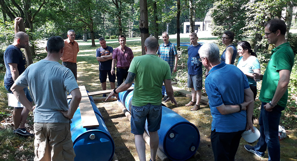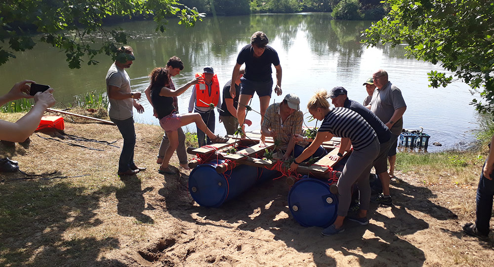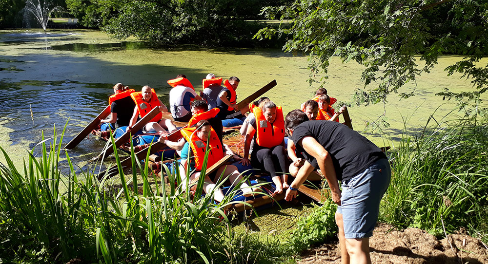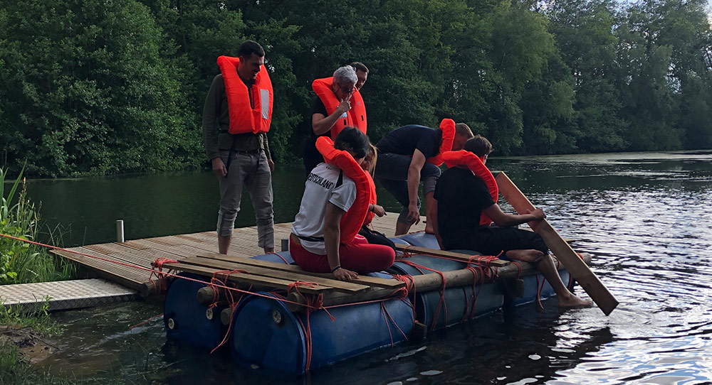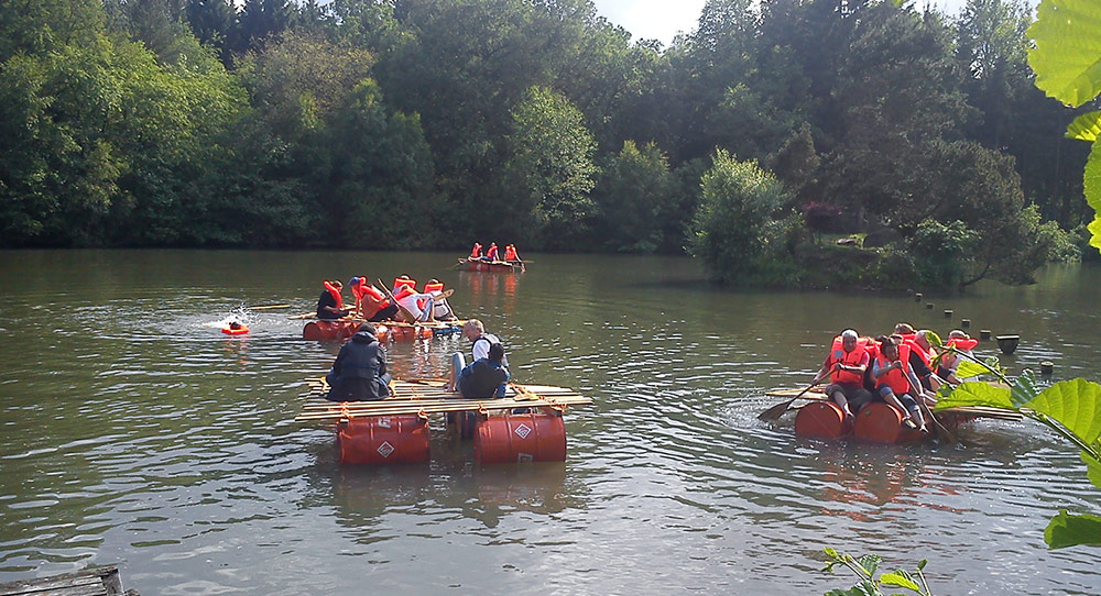 Sie bekommen die Aufgabe, zu einer Insel im See zu gelangen. Die Materialien, das Gelände, der See und Schwimmwesten werden von uns gestellt. Eine Bauanleitung ist leider nicht dabei. Entwickeln Sie beim Floßbau Kreativität und überqueren Sie mit den selbst konstruierten Wasserfahrzeugen unseren See.