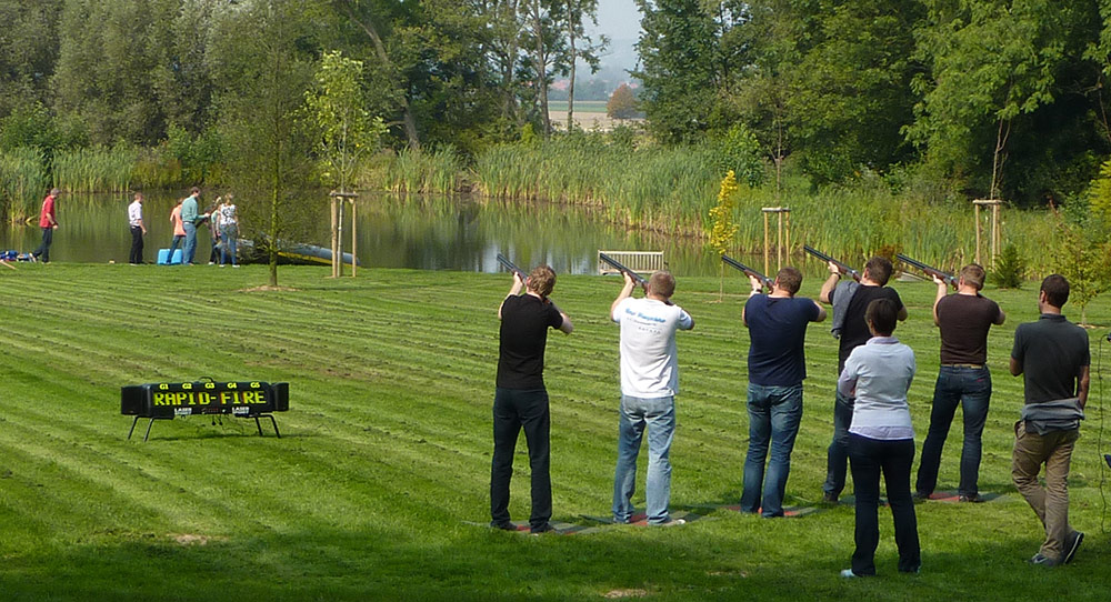Lasersport Tontaubenschießen ist ein Sport, an dem jeder Gefallen finden kann. Die Mitspieler benutzen ein modifiziertes Gewehr, um mit einem Infrarotstrahl auf von einer Wurfanlage geschleuderte Tontauben zu schießen.
