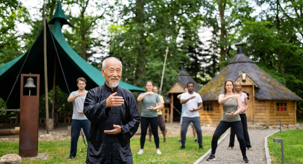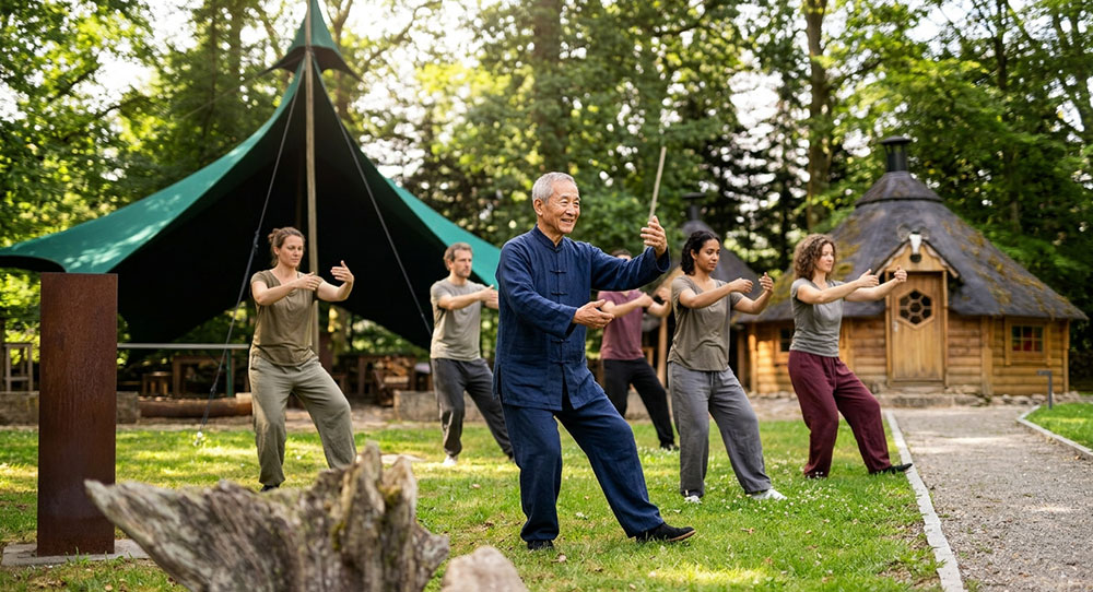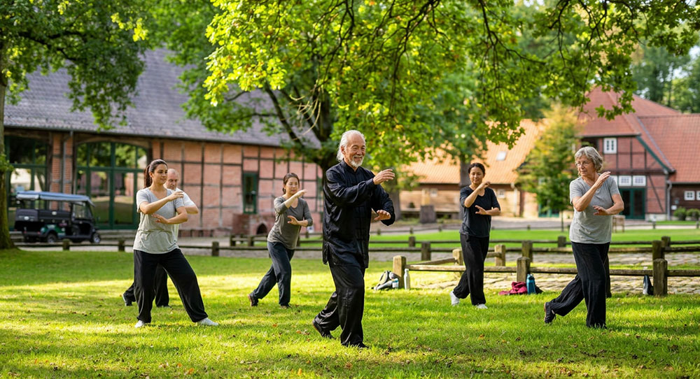 Tai Chi ist eine ruhige, fließende Bewegungsform aus China, die Körper und Geist gleichermaßen stärkt. Durch langsame, bewusste Bewegungen werden Gleichgewicht, Beweglichkeit und innere Ruhe gefördert.