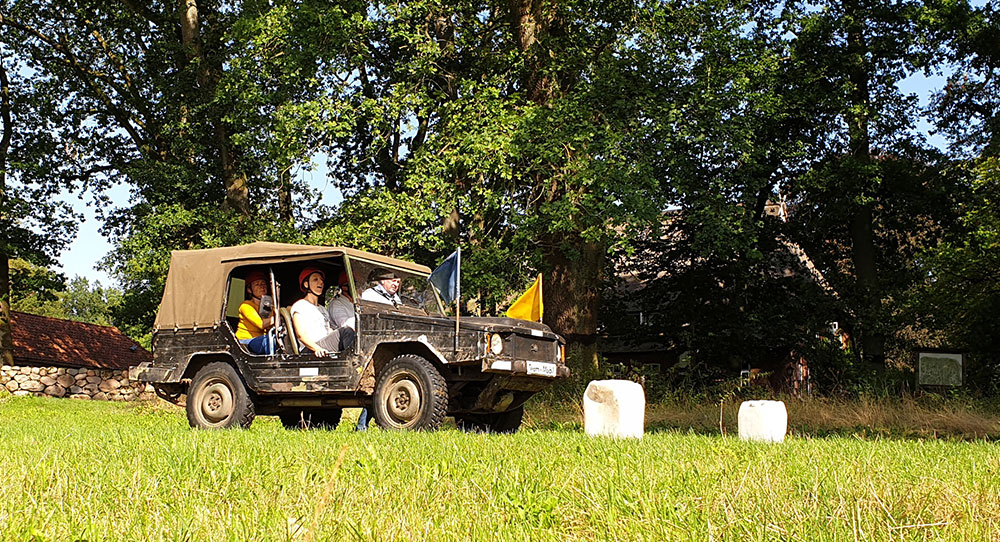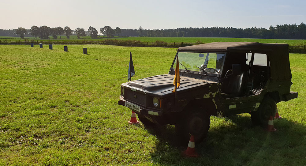 Es könnte auch von Vorteil sein, den ein oder anderen als „Einweiser“ mit einzusetzen. Spüren Sie den Teamspirit und lassen Sie sich durch die eigentümliche Lenkung überraschen. Alle sind gefragt, um diesem Riesenspaß mitzuerleben und sicher ans Ziel zu gelangen.