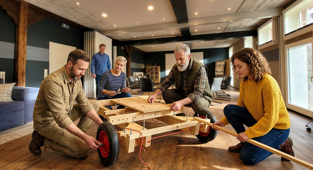 Das gesamte Team erhält den Auftrag, ein fahrbares „Vehikel“ zu bauen und dem Kunden am Ende zu präsentieren. Dabei sind besondere Regeln und „Kundenwünsche“ zu beachten, außerdem muss vom Verkaufsteam eine Verkaufsstrategie entwickelt und der Kontakt zum Kunden aufrechterhalten werden, um das Gesamtprojekt zum Erfolg werden zu lassen.